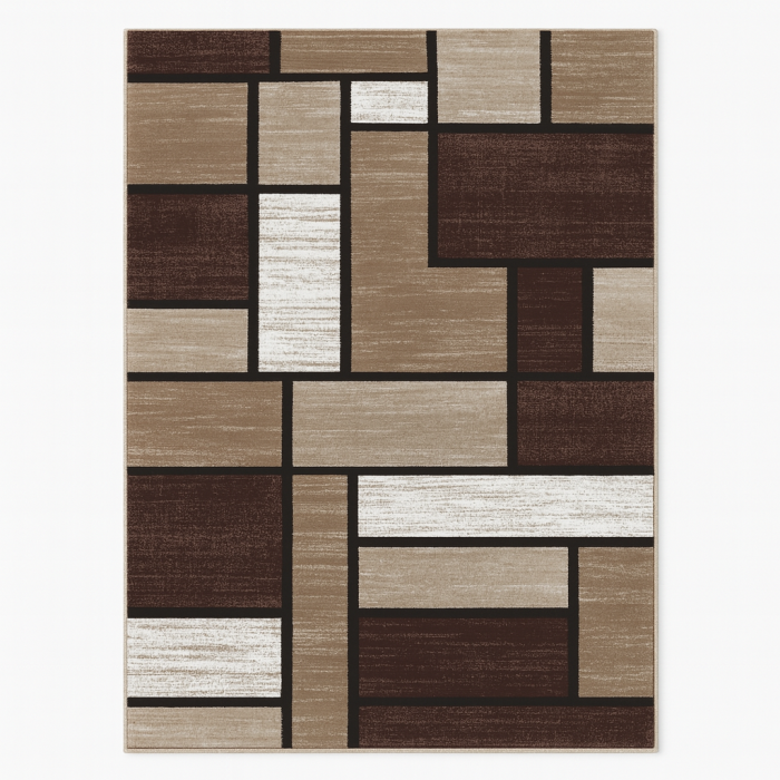 Covoare 170/250 - Covor modern bej maro inchis, model geometric patrate