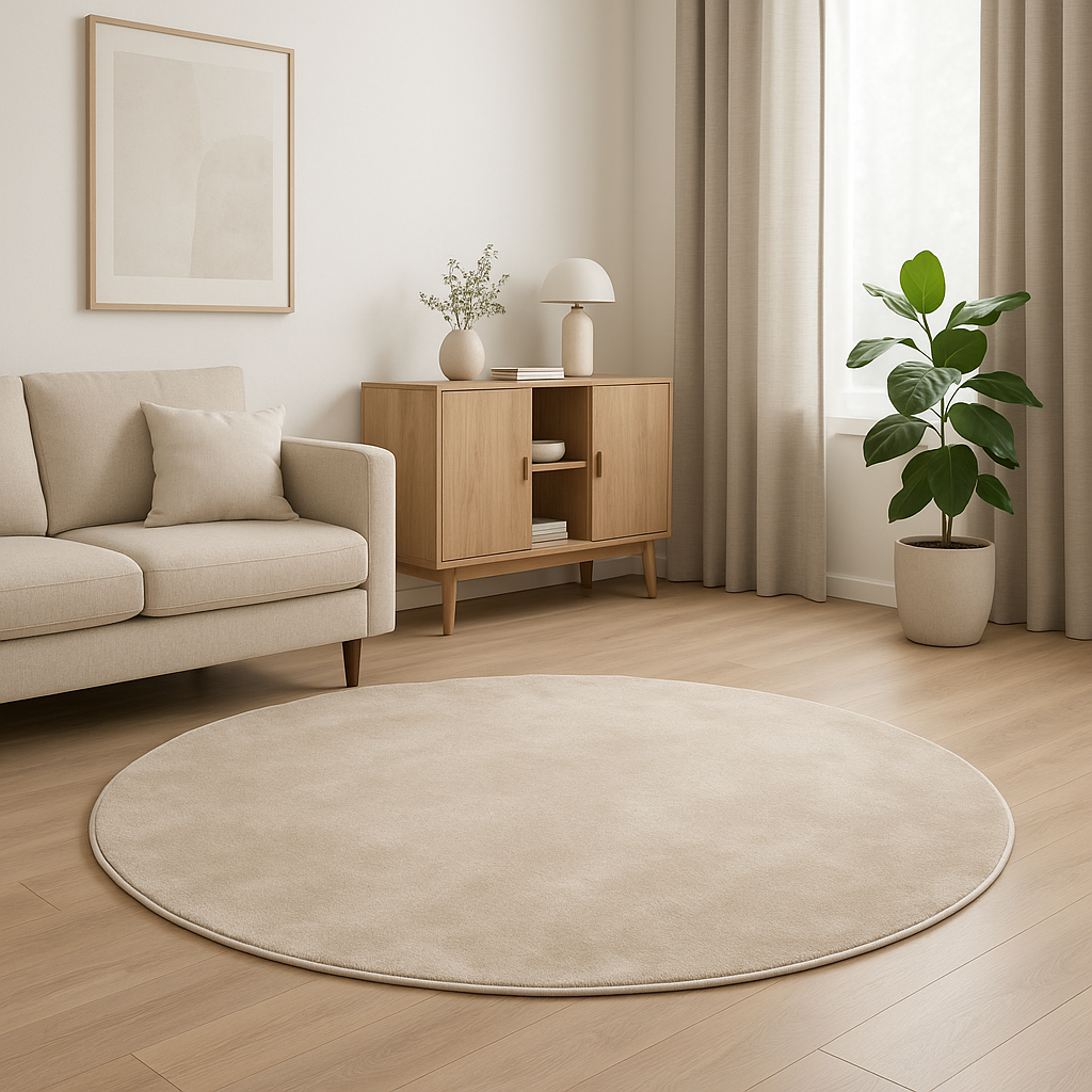 Covor rotund cu fir scurt crem uni